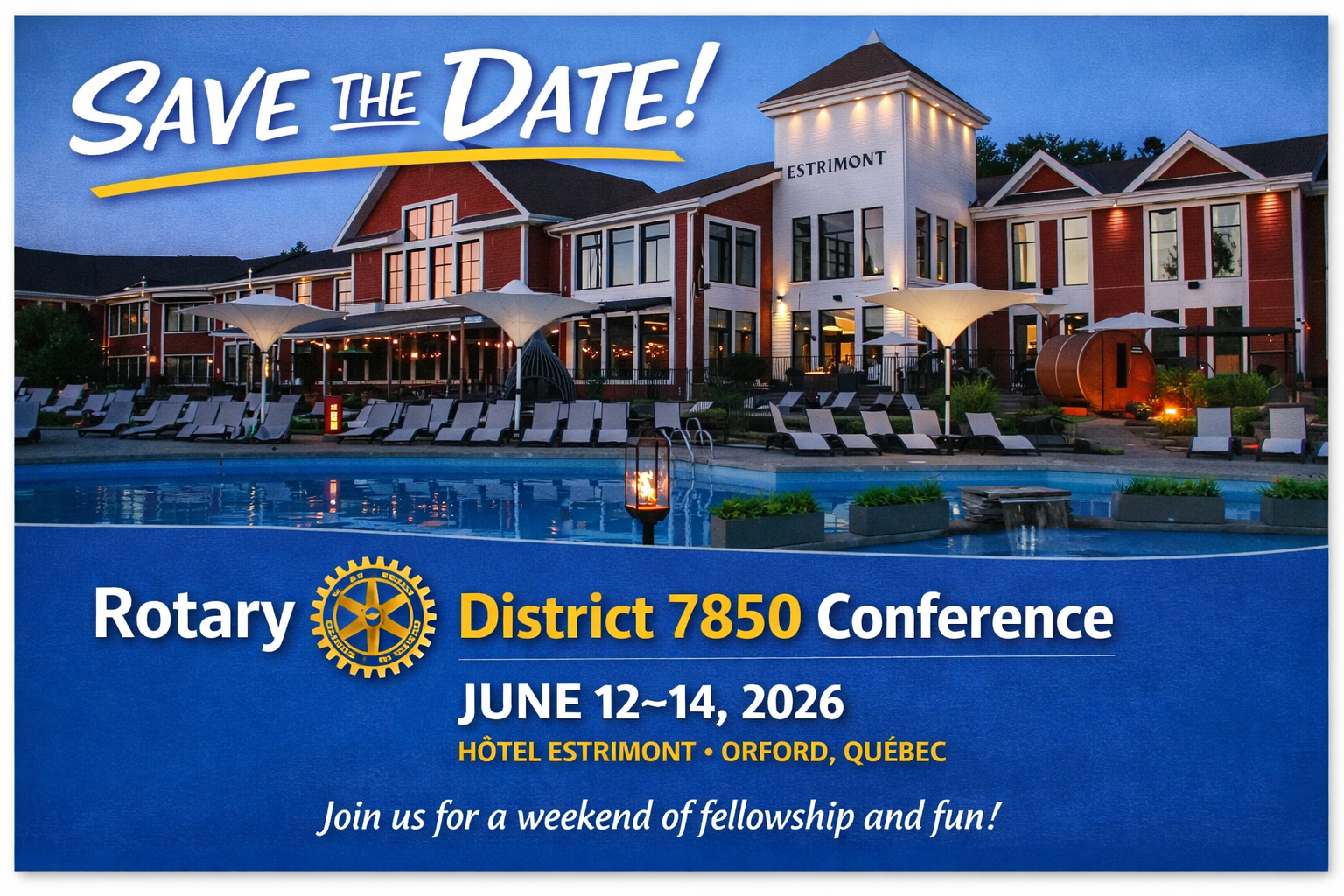 I am taking a moment to extend my best wishes for the new season, dear fellow Rotarians. I speak of gratitude because it is the profound feeling I have after visiting your clubs and meeting with you. I am also grateful for the many commitments to Service Above Self that you demonstrate year after year. Thank you to all the presidents and their boards of directors for your dedication. It truly is leadership by example. I am deeply grateful to the assistant governors and the district executive members; I could not do it without you. We must not forget to celebrate, even the small victories. Many opportunities lie ahead with the start of the new year: in March, NEPELS is a major educational event; the spring meeting in April includes the public speaking competition, and to conclude the year, the district conference in June in Quebec. I wish you happiness and good health. DG Luc Pomerleau