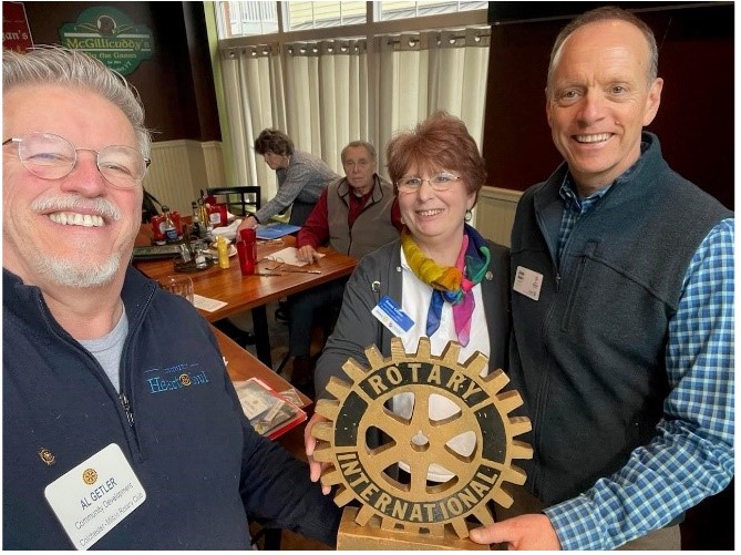 Here are from left – new member Al Getler, DG Susan, and Al’s sponsor, John Abry.