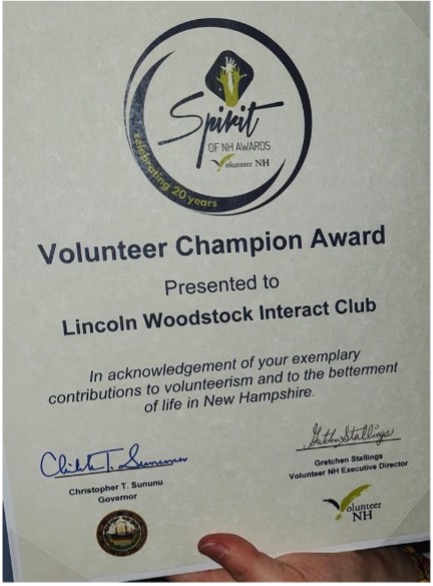 Here is an award they were given as Volunteer Champ-ions by the Spirit of NH.