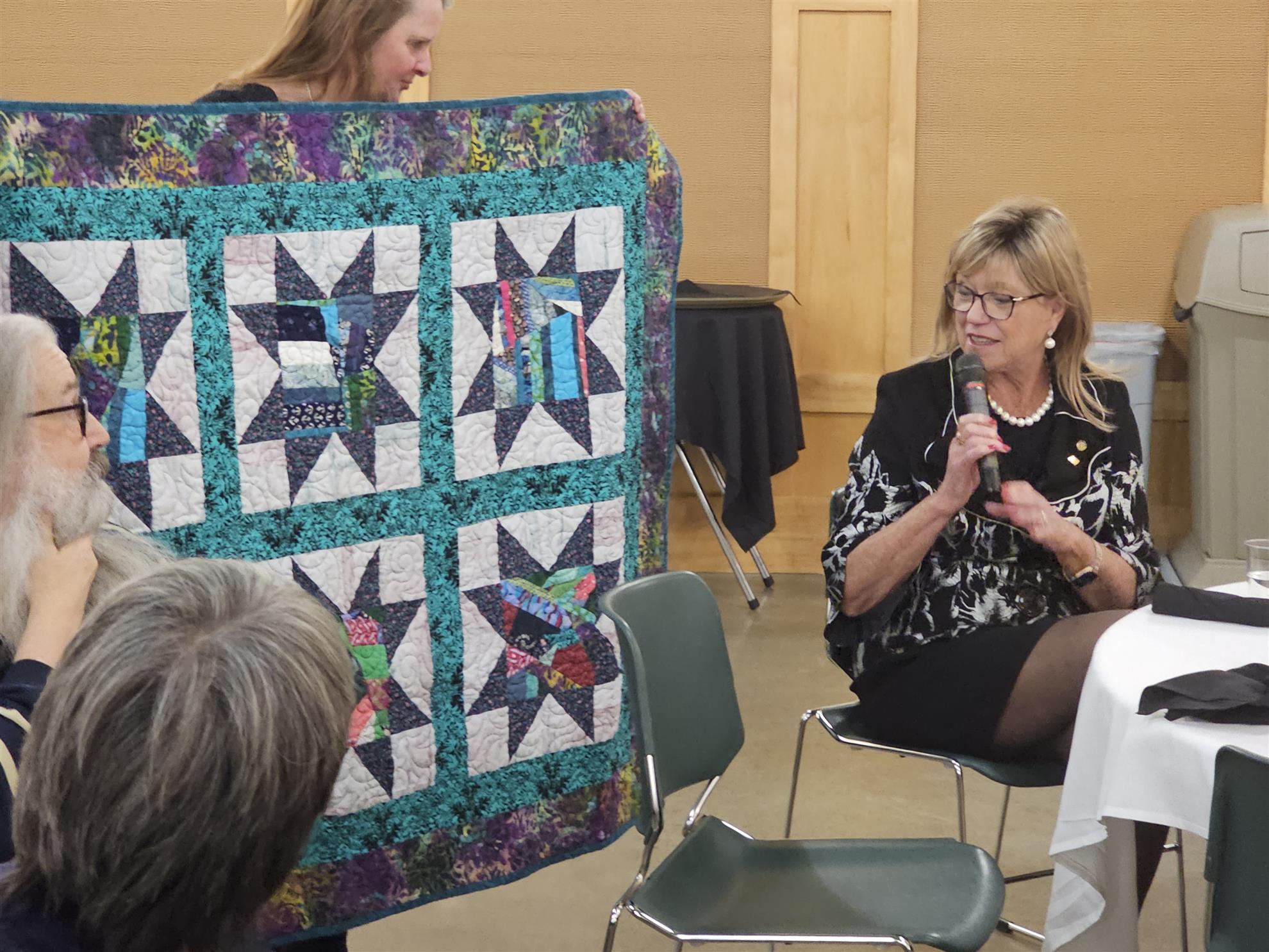 Brenda Cressey with the quilt she made for the auction to end polio now.